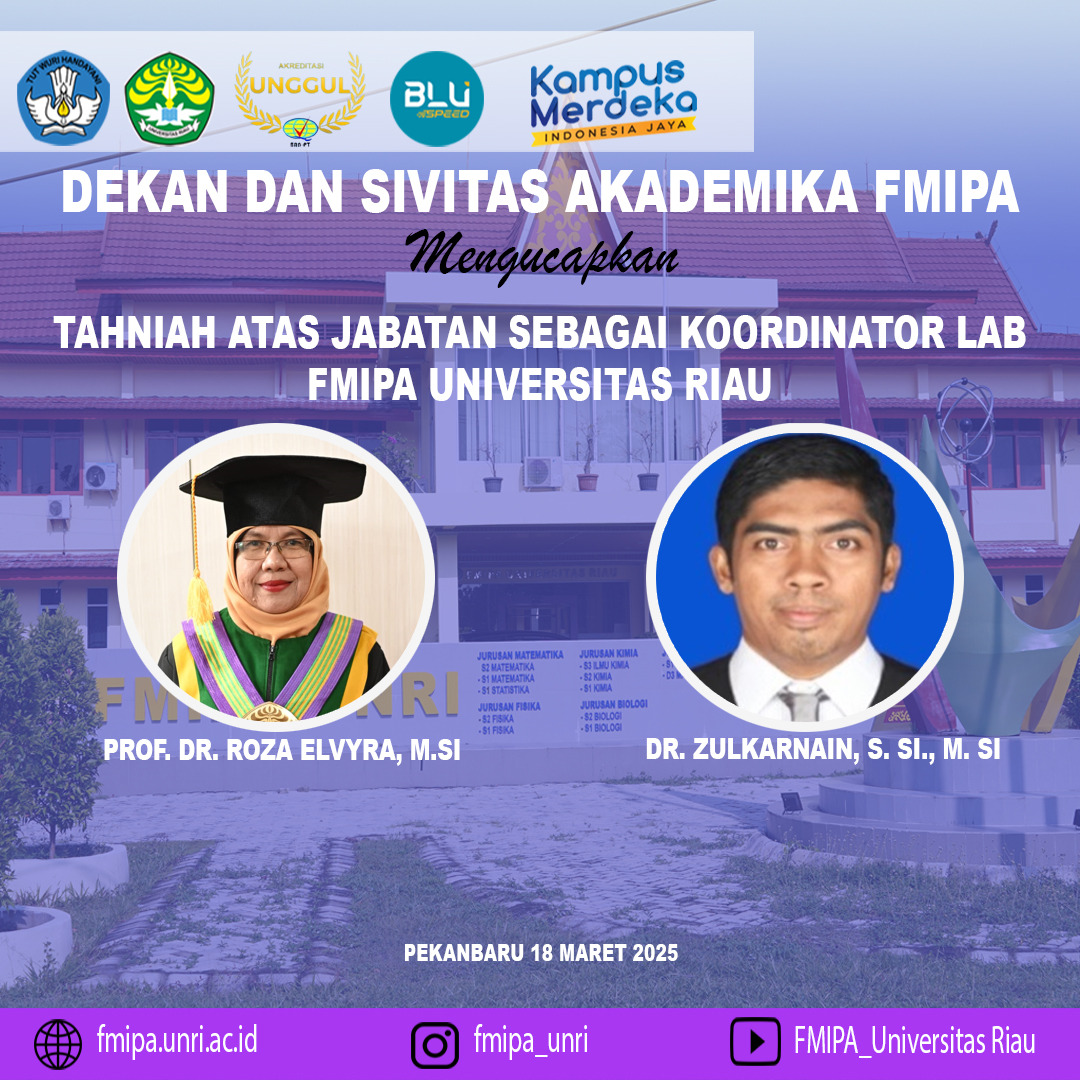 Congratulations on the Position as Head of the UNRI FMIPA LAB Coordinator Prof. Dr. Roza Elvyra, M.Si., and Dr. Zulkarnain, S.Si., M.Si