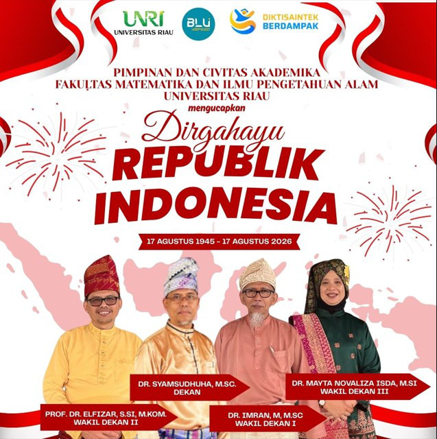 Pekanbaru, August 17, 2025 – The Faculty of Mathematics and Natural Sciences, University of Riau (FMIPA UNRI), with gratitude and pride, extends its greetings to the 80th Anniversary of the Republic of Indonesia.