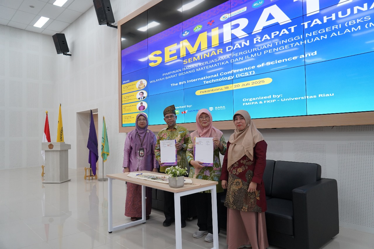 The MoA signing took place on the sidelines of SEMIRATA 2025, organized by FMIPA and FKIP UNRI. It was attended by the Deans of FMIPA UNRI and FMIPA UNMUL, along with faculty leaders from both parties.