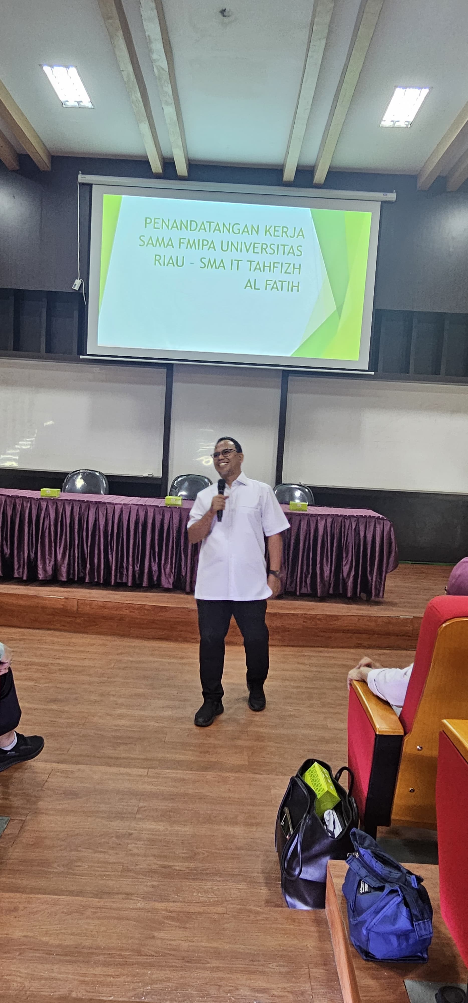 Acara ini dihadiri oleh Dekan FMIPA Universitas Riau, Prof. Dr. Syamsuduha, M.Sc, beserta jajaran pimpinan fakultas, dosen, serta perwakilan dari SMA IT Tahfizh Al Fatih yang dipimpin langsung oleh Kepala Sekolah